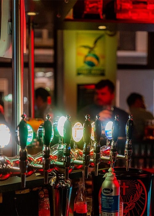 Vores glade og festlige personale – og ofte nogen af vores mange stamgæster – er lette at falde i snak med med men bare rolig, hvis du bliver tør i ganen af alt den sludder har vi rigeligt at skylle med.